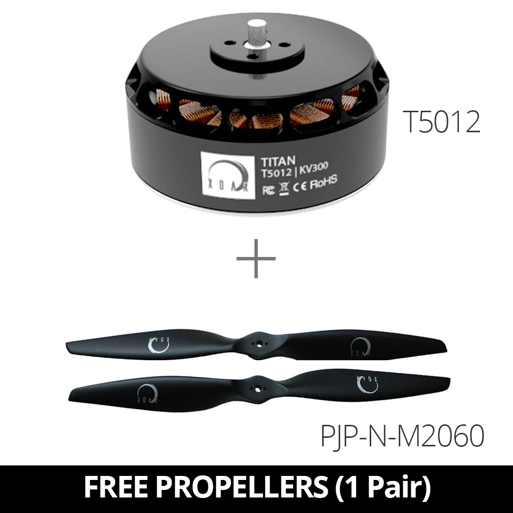 XOAR Titan T5012 Brushless Electric Motors are specially designed with top grade materials and tested for dynamic balance. XOAR Titan electric motor's light weight, quick response, low noise, unique design pair with XOAR Precision Pair Propellers in order to offer the best balance in weight and performance for the ultimate propulsion system.